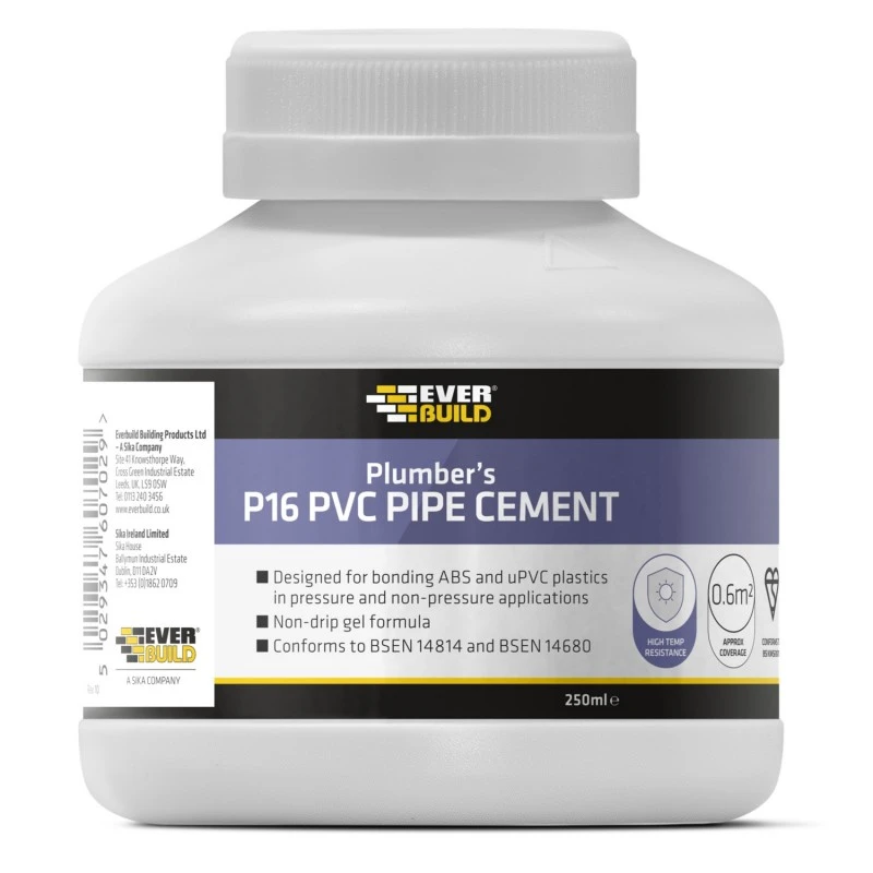 Everbuild P16 PVC Pipe Cement for use with non-pressure PVC and ABS thermo plastic pipes and conduits.