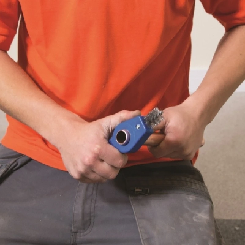 Stiff carbon steel bristles for cleaning the inside and outside of copper pipe and fittings.