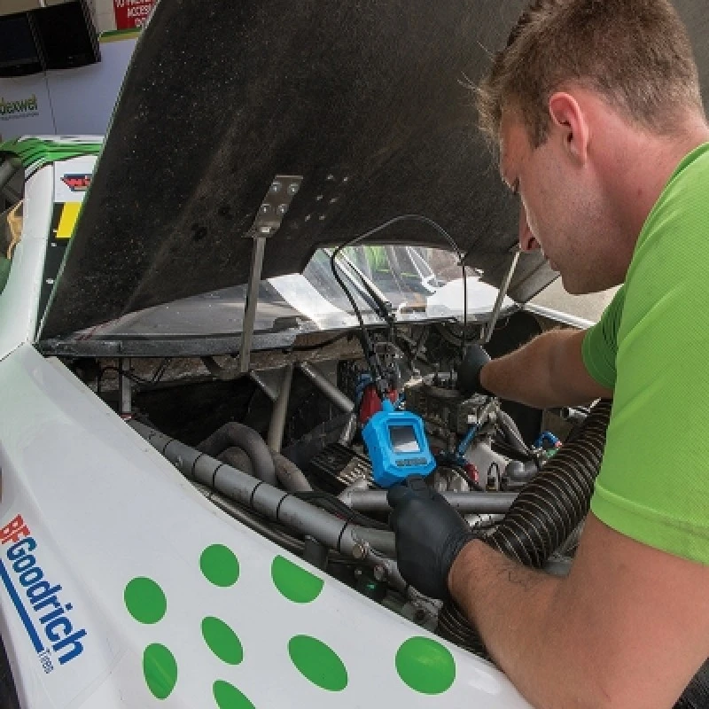 Lens-mounted LED lights with adjustable brightness for inspecting areas with low visibility up to 1.5 meters.